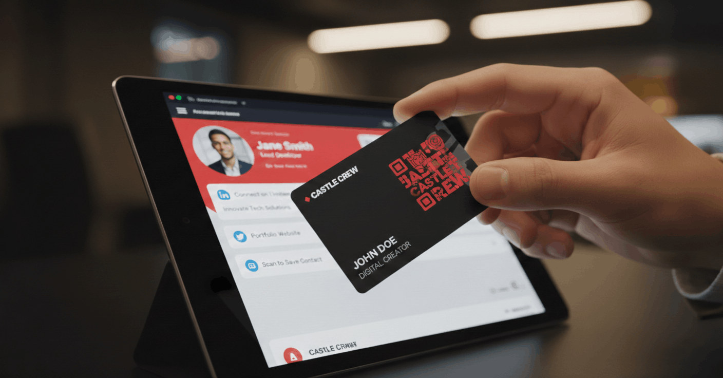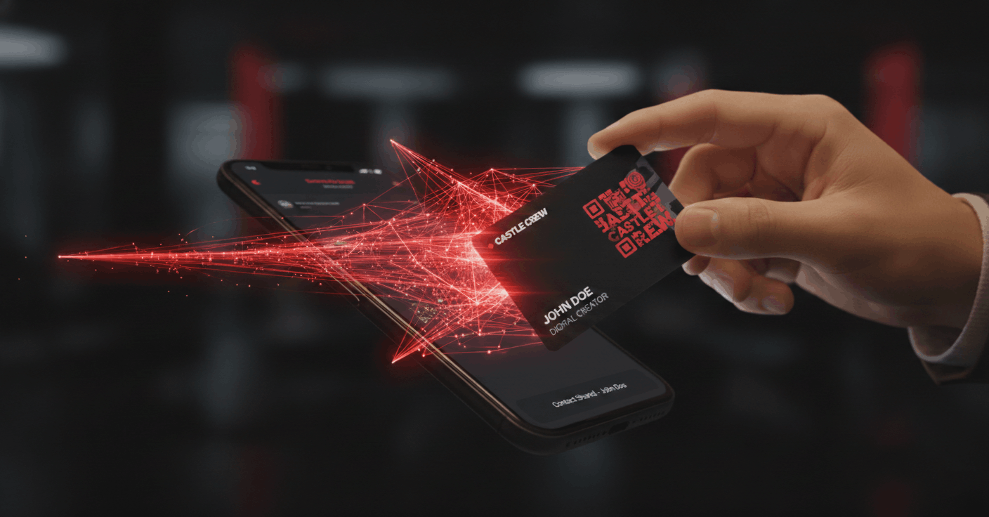 Custom NFC business cards by Castle Crew. One tap to share your contact info, portfolio, and socials. No app required.